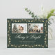 Elegant custom green and gold photo Merry Christmas card featuring gold holly on a dark green background. Easily personalise this photo Merry and Bright holiday card with your favourite photos and the family name.