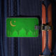 Elegant islamic illustration: golden mosque silhouette with a moon and a star on a grungy green background.