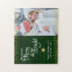 Green Gold Photo Days Merry Bright Script Holiday Jigsaw Puzzle