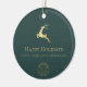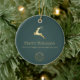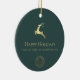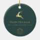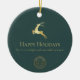 Green Gold Reindeer Happy Holidays Business Logo Ceramic Ornament