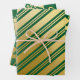 Green Gold Reindeer Presents Stripes Christmas Wrapping Paper Sheets.