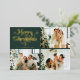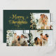 Green & Gold Retro Christmas Family Photo Collage Foil Holiday Card