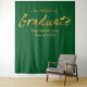 Modern, simple and minimalist congratulations graduate welcome banner, photo wall backdrop. Designed with trendy gold handwritten brush script typography on green background to match school, college or university colours. Customise school or college details and class year.