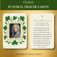 A beautifully reverent Catholic memorial design featuring golden shamrocks and Celtic-inspired embroidery on a deep emerald green background. The front holds a photo of your dearly departed framed in a graceful embroidered border, while the back offers a traditional Catholic prayer invoking the intercession of the Blessed Virgin Mary and the Saints. A sacred keepsake for honouring a life of grace and faith, perfect for sharing at the funeral or memorial Mass.
