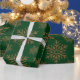 Pretty gold snowflakes on a rustic green background. Perfect for all your holiday gifts.
