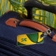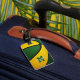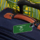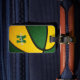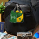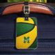 This sporty basketball themed luggage tag suitable for a girl or boy features an abstractly oversized basketball with alternating recolored green and gold panels, upon which you can personalise with the athlete's name and monogram on the front - customise the address and phone number on the back - by katz_d_zynes