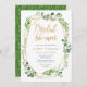 Invite your friends and family to celebrate your bridal shower with this gorgeous watercolor green leaves and gold terrarium Bridal Shower Invitation with a faux gold foil handwritten text.