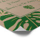 Green and gold tropical leaves wedding “We Know You’d Be Here Today If Heaven Weren’t So Far Away” poster. It showcases lovely leaves of Split Leaf Philodendron (Monstera deliciosa) or Swiss Cheese Plant and palm leaves in green with gold outline on tan rustic style paper. Your wording is in a tan frame with green outline.