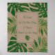 Green, gold tropical leaves wedding sign