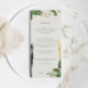 This invitation has green watercolor tropical leaves and simulated gold foliage. The copy is editable and the font can be changed. The back has a matching pattern. Great for summer and beach weddings!