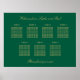 Green Golden Beige 7 Table Seating Chart Poster, please personalise the names of the couple and the names of the guests along with any of the other text that you may wish to personalise. An elegant seating chart featuring stylish elegant text in a golden shade of beige (faux gold / gold look) on Hunter Green.