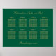 Green Golden Beige 8 Table Seating Chart Poster, please personalise the names of the couple and the names of the guests along with any of the other text that you may wish to personalise. An elegant seating chart featuring stylish elegant text in a golden shade of beige (faux gold / gold look) on Hunter Green.
