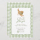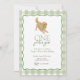 Celebrate your little one’s “one golden year” with this sweet puppy themed invitation! Featuring a playful golden retriever wearing a green gingham bow and a matching green gingham border, this design is perfect for a first birthday party. Easily customise the name, date, and party details right in your browser—no special software needed. A charming choice for dog lovers and darling birthday celebrations alike!