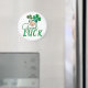 Green Good Luck Four Leaf Clover Shamrock magnet. Quote Good luck and hand-drawn green clovers with four leaves for luck.