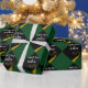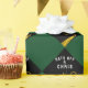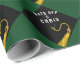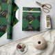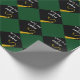 Cool graduation giftwrap or graduation party decoration featuring black cap with gold tassel on a green background. Edit text to add his or her name.