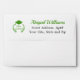 Personalized graduation envelope in green color theme. It's designed with a return address on the back flap and a cap and laurel logo with your class year inside. It has an inside color to match.