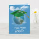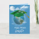 Green graduation cap with a gold tassel on world globe in clouds for graduate congratulations.