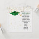 Green mortarboard in gold confetti on soft white textured background for a graduation party invite.