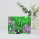 This colourful fractal postcard has bright and vibrant colours such green, purple and pink. This postcard can be used for birthday parties, thank you notes, save the date, R.S.V.P. and weddings. If someone likes bright and vibrant abstract designs, this is the perfect postcard to send them.