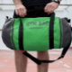 Sleek and customizable gym duffel bag design with minimalist text reading "Gym Bag" and personalized name text in white. The bag features a stylish combination of green and dark gray, making it the perfect gift for a friend who appreciates customized items.