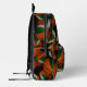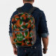 This cool basketball backpack features a random pattern of varied size basketballs turned every which way on a black background - each of the basketballs in the pattern has two recolored panels--one green and one grey - customise with the athlete's name & jersey number - by katz_d_zynes