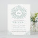 Sage grey green hand drawn growing leaf botanical art wedding invitations. Simple leaf design circling your own monogram initials design. In pretty shades of green and grey on white. Other colours and matching items available. © Original leaf drawing and design by Sarah Trett for www.mylittleedenweddings.com on zazzle.