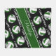 This cute volleyball themed fleece blanket for girls features the realistic image of a volleyball that has green, grey and white panels patterned at an angle with the sporty font text phrase "I love volleyball" in white that stretches between the angled rows of volleyballs - the volleyballs' green & grey panels are blended with a girly kaleidoscopic pattern for a textured appearance - personalise her name in a sophisticated handwritten font on an angled chunky full width green colour strip - background is customisable black - by katz_d_zynes