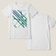 A diagonal abstract design that consists of geometric stripes and lines in a patterned effect in the colour combination of medium green and grey. Pictured here on a "white fleck" Bella+Canvas Tri-Blend t-shirt, with.other t-shirt styles and colours available. Inspired by the retro Mid-century Modern design and modernistic patterns, This "wearable art" overall look is innovative and artistic, a trendy addition for casual, everyday wear (for activities from work/school to sports to relaxing/socialising/running errands around town). Especially for those who work remotely and/or spend a lot of time at home, the shirt contributes to a feeling of being "dressed" and "put together," with a personalised style.