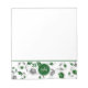 This fun soccer themed notepad features randomly arranged green, grey & white soccer balls of varying sizes at its bottom edge with easy-to-personalise name & monogram on a coordinating green circle pendant plus jersey number on one of the soccer balls - by katz_d_zynes