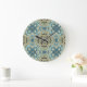 Green Grey Teal Blue Ochre Hip Bohemian Bali Art Large Clock