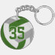 This team colours volleyball themed keychain for boys or girls features a realistic looking green, grey and white volleyball upon which you can customise the player's name, jersey number and court position, plus school or club name and mascot name in a varsity letter style font - by katz_d_zynes