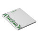 This volleyball themed notepad features 3 team colour volleyballs with green, grey and white panels overlying green and grey vertically orientated varsity stripes on the left edge - coach's name is customisable - by katz_d_zynes