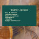 On the back, your name and contact details appear in the same gold colour against a matching green. This card provides an easy-to-use template for your contact info. You can change what's on each line as you'd like, but just make sure it fits the boundaries of the card.