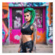 Green Hair Tattoo Punk Babe in Graffiti Street Photo Print