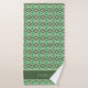 These towels feature a pale green, bright green and olive green knit sweater look geometric pattern. A wide stripe of olive green trimmed in pale green has a place for you to personalise the towel with your name.