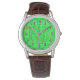 The watch looks really great! Very sharp and well done. The leather band is really nice, though for a man's watch I think it should be longer. Unfortunately, it isn't big enough for my husband's wrist but I will get a replacement because he is very excited to wear it!