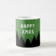 Trendy Christmas design in green, featuring a retro style forest with pine trees and snow.