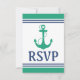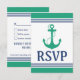 Green Heart Anchor Monogram Wedding RSVP Card