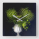 Green heart in black square wall clock