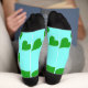Green hearts pattern on blue socks
