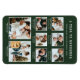 Green Holiday Photo Magnet. Elevate your heartfelt sentiments with our chic 'A Year To Remember' personalised photo holiday magnet card. This stylish keepsake, featuring a vintage typewriter font and space for 8 family photos is a perfect blend of nostalgia and style. White text on a green background. Personalise and make your memories timeless!