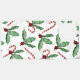 Christmas holiday season holly leaves and berries branch and candy cane watercolor painting, featuring multiple red, green holy leaves and red berries with white and red candy cane pattern, hand painted watercolor vintage feel design, on a simple white background. This holly plant floral and candy cane vibrant colours pattern is perfect to bring joy, happiness and good luck to the winter holidays season.