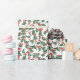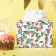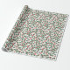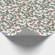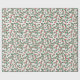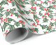 Festive wrapping paper with a vintage holiday pattern of green holly with and bright red berries.