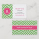Green & Hot Pink Chevron Custom Monogram Business Card