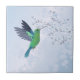 Green Hummingbird With Blue Cherry Blossom Ceramic Tile