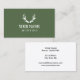 Custom green hunting deer antler business card template. Vintage company card for hunter, park ranger, camping sight, lodging firm, nature observer, employee, boss, entrepreneur, company or other jobs. Simple layout design with animal icon and modern typography. Classy illustration with custom background colour. Make your own visit cards for marketing, advertising and promotions. Customisable text for custom address, phone, email and website. Also good for other occupations like outdoor shop owner, hunting store, travel agency, collector, taxidermy, startup etc. Elegant icon card with optional rounded corners or glossy texture finish. Start your business today!