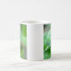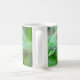 Beautiful coffee mug with a photo of a green iguana lizard on a wet leaf after a rain.