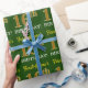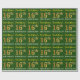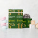 This wrapping paper design features a message like "First-Name’s 16th BIRTHDAY!", with the "16th" having a faux/imitation gold-like colour appearance. The name can be customised, and the background is coloured green. It could perhaps be used when wrapping gifts being given for somebody’s sixteenth birthday. [~Z0000179]