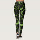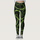 Abstract retro pattern leggings with oval shapes in shades of green that look tangled and bit messy but oh so fun on a customisable black background - by katz_d_zynes
