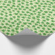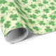 Wrapping paper featuring a pattern of three leaf clovers in two shades of green on a lighter background. Fun design, perfect for St Patrick's day.